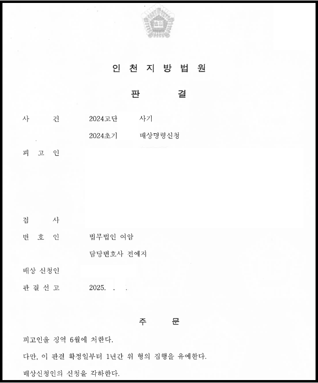 법원은 변호인이 제출한 다양한 양형 참고자료를 바탕으로, 의뢰인이 피해 금액을 성실히 변제해 나갈 충분한 자질을 갖추었는지 면밀히 검토하였습니다.