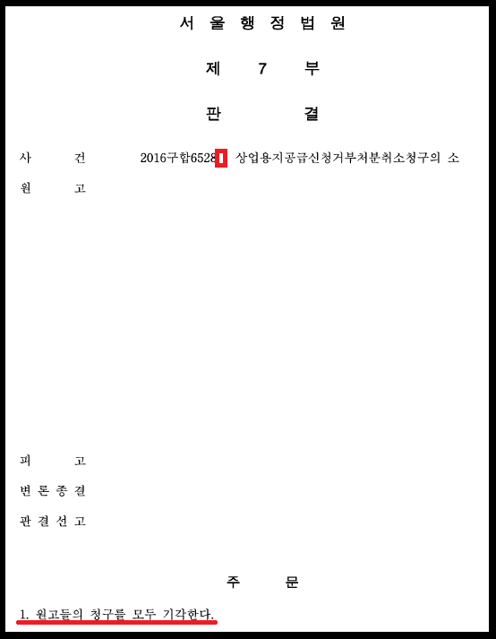 법원은 제 주장을 전면적으로 받아들여 주셔서, 주민들의 청구를 기각하여 주셨습니다.
