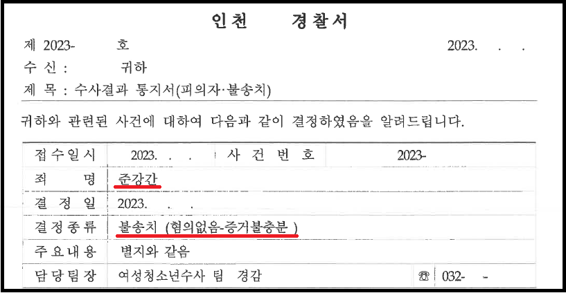 경찰에서는 수개월간 여러가지 조사를 행하시고 제가 의뢰인과 함께 준비하여 제출한 의견서와 참고자료들을 모두 살펴보신 다음, 최종적으로 의뢰인에게 무혐의 결정을 하여 주셨습니다.