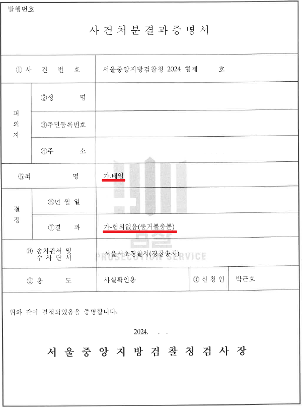하지만 검찰에서는 제가 제출한 의견서를 면밀히 검토하신 끝에 결국 혐의없음 결정을 하여 주셨으며, 이로써 의뢰인은 평온한 일상으로 돌아갈 수 있었습니다.