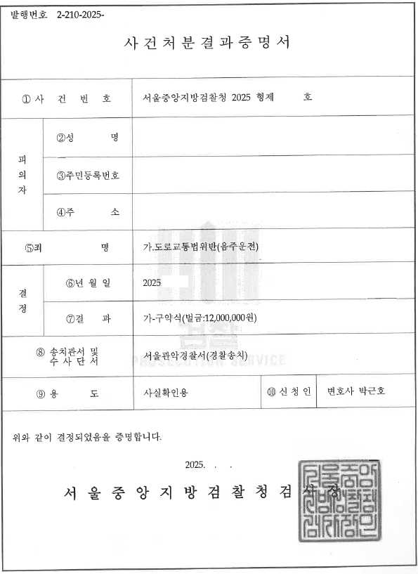 ※ 박근호 변호사는 김앤장/사시 출신 형사전문변호사로서 다양한 음주운전 사건을 처리하며 축적한 경험과 법적 전략을 바탕으로 유리한 결과를 이끌어온 만큼, 높은 혈중알콜농도로 음주운전 하여 고민 중이라면, 곧바로 박근호 변호사와 상담해보시기 바랍니다.
