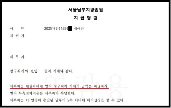 완벽한 지급명령신청서를 준비하여, 지급명령을 발령시키는 것이 관건이었습니다.